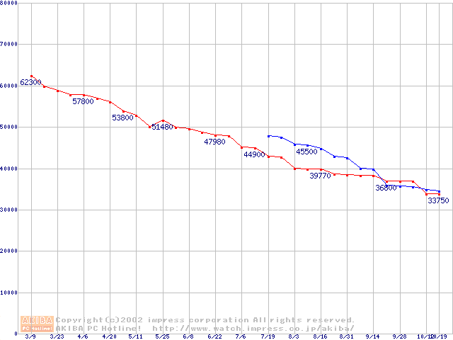 | 2.5インチHDD主要製品(最安値3万円以上)の最安値推移 |