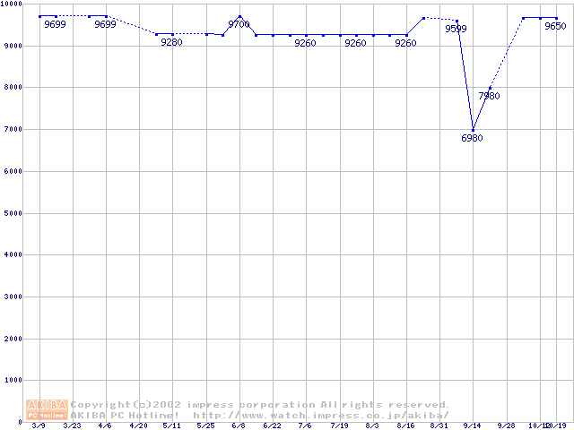 | [↓次グラフ]: | 2.5インチHDD 10GB~20GB未満(9.5mm厚)の最安値推移 |