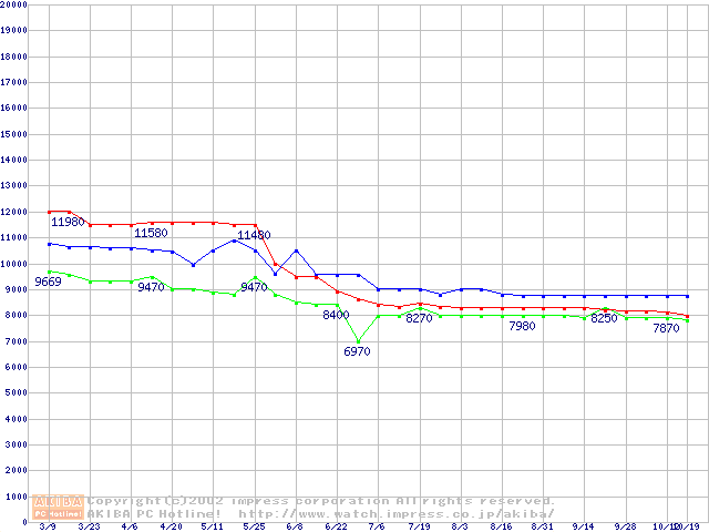 | [↑前グラフ]: | 2.5インチHDD 10GB未満(9.5mm厚)の最安値推移 |