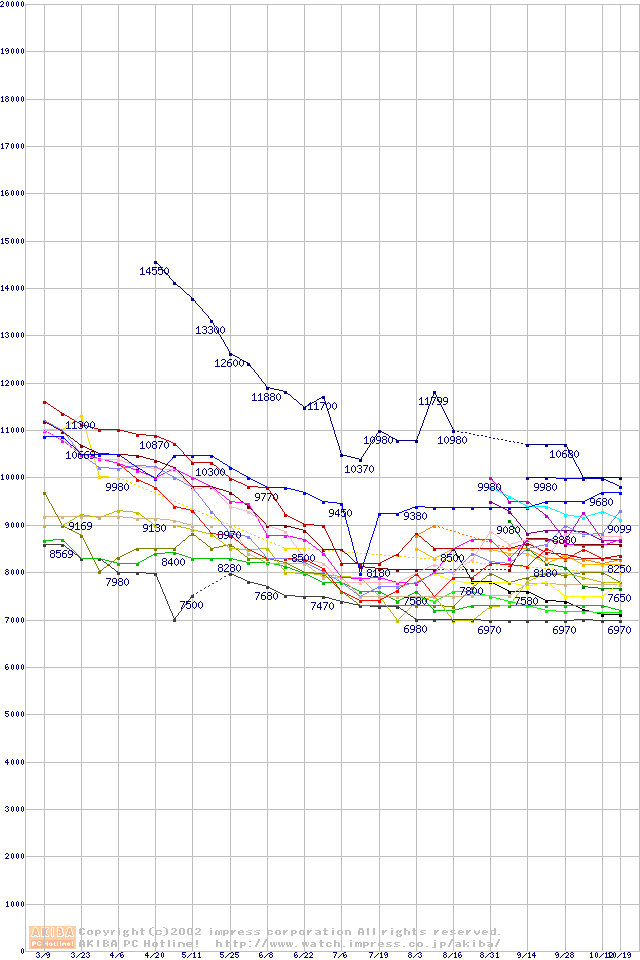HDD主要製品の最安値推移