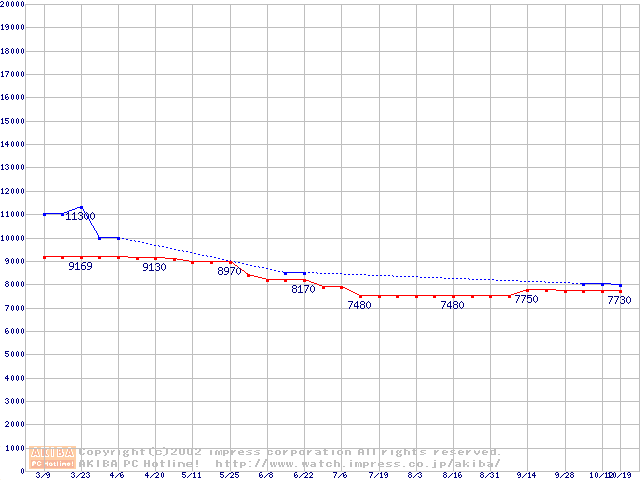 | [↑前グラフ]: | HDD 100GB以上(5400rpmクラス)の最安値推移 |
