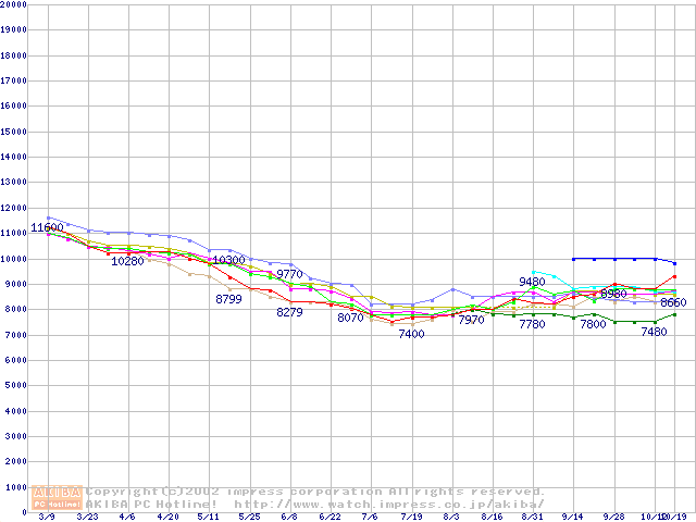 | [↓次グラフ]: | HDD 60GB~80GB未満(7200rpmクラス)の最安値推移 |