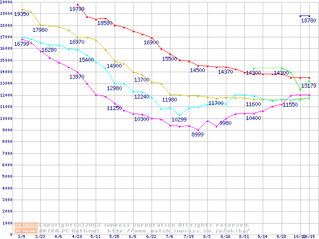| [↓次グラフ]: | HDD 100GB~180GB未満(7200rpmクラス)の最安値推移 |