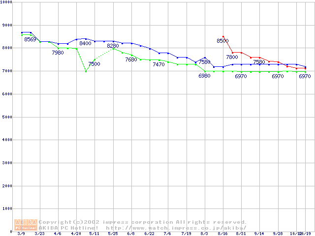 HDD 20GB~30GB未満(5400rpmクラス)の最安値推移