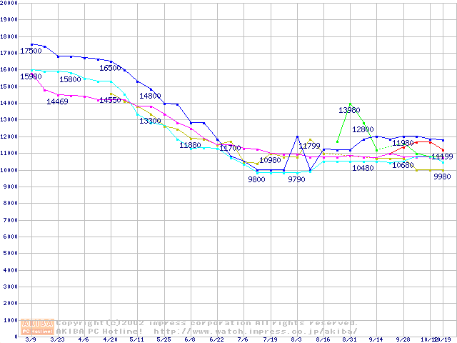 | [↓次グラフ]: | HDD 100GB以上(5400rpmクラス)の最安値推移 |
