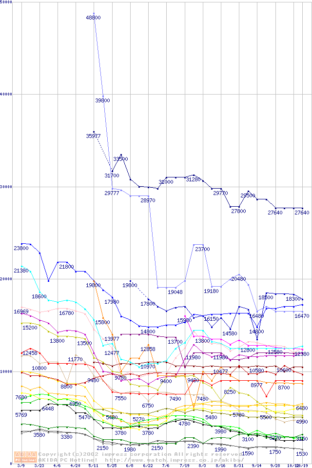 HDD 180GB以上(7200rpmクラス)の最安値推移