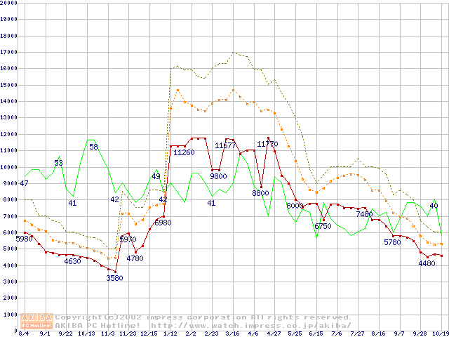 メモリ主要製品の最安値推移