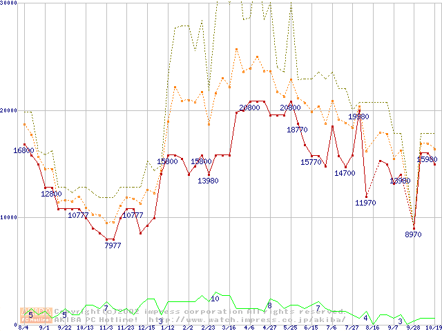 PC133 SDRAM DIMM CasLatency=3 ECC対応の最安値推移