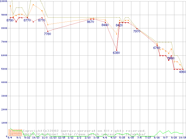 Socket A (PGA,FSB 200MHz,L2 256KB,Thunderbird)の最安値推移
