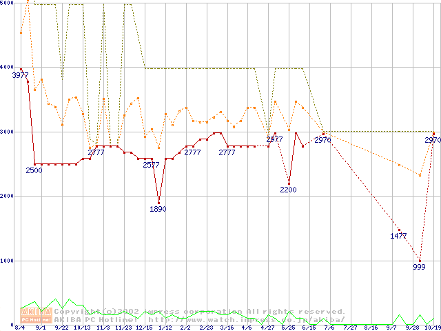 PC800-45 DRDRAM RIMMの最安値推移