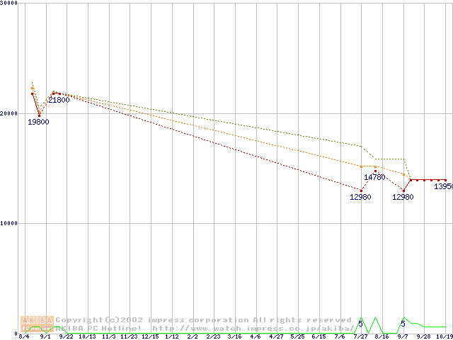 Socket 370 (FC-PGA,FSB 133MHz,L2 256KB)の最安値推移