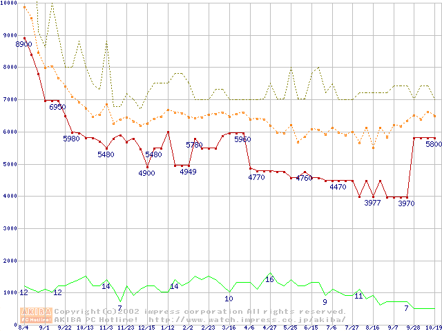PC800-45 DRDRAM RIMM ECC対応の最安値推移