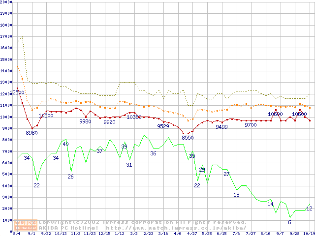 PC800-45 DRDRAM RIMMの最安値推移