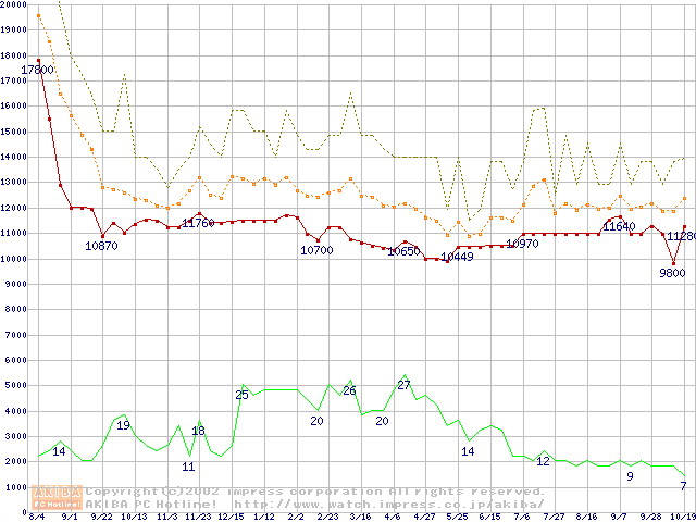PC800-45 DRDRAM RIMM ECC対応の最安値推移