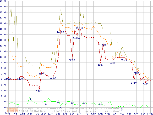 PC100 SDRAM DIMM CasLatency=2の最安値推移