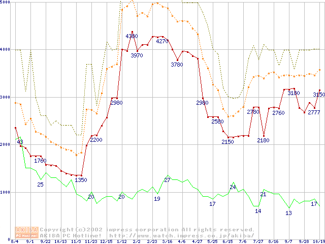 メモリ主要製品の最安値推移