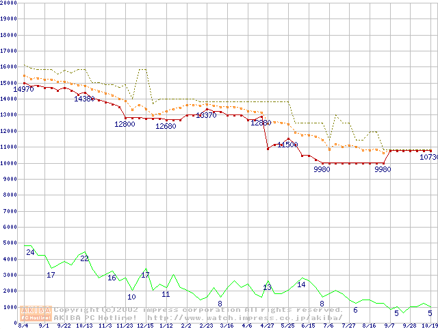 WD Caviar (5400rpm,UltraATA/100,2MB)の最安値推移