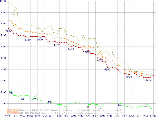 Socket A (PGA,FSB 200MHz,L2 64KB,Spitfire)の最安値推移