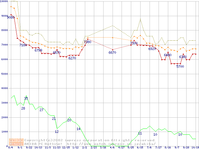 Celeron 850MHz FC-PGA リテールパッケージの価格推移