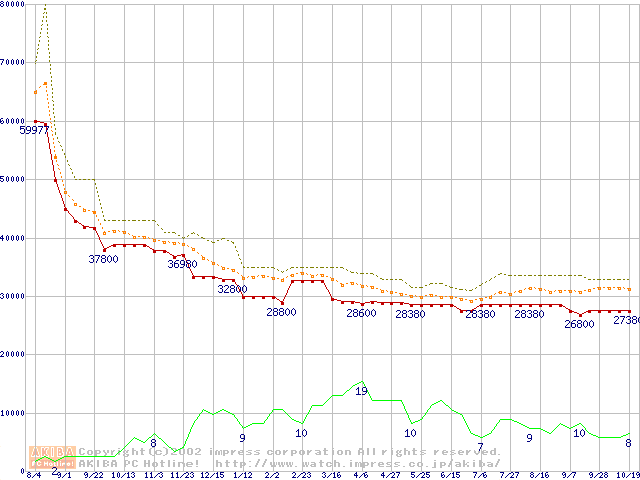 PC800-45 RIMM 512MBの価格推移