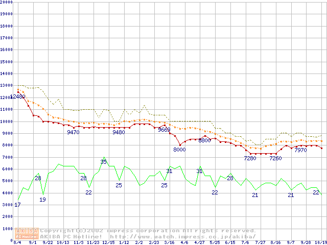 U6 (5400rpm,UltraATA/100 2MB 40GB/Platter)の最安値推移