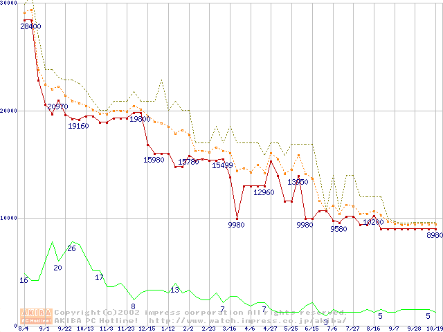 Socket A (PGA,FSB 200MHz,L2 256KB,Palomino)の最安値推移