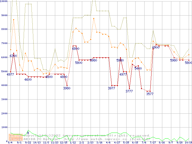 PC133 SDRAM DIMM CasLatency=3 ECC対応 Registeredタイプの最安値推移