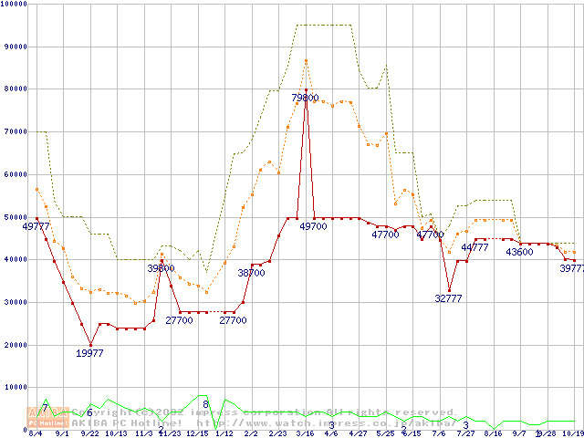 PC133 SDRAM DIMM CasLatency=3 ECC対応 Registeredタイプの最安値推移