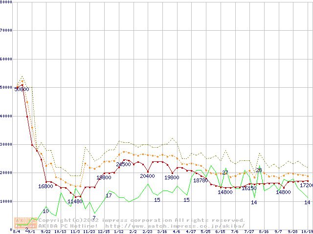 メモリ主要製品の最安値推移