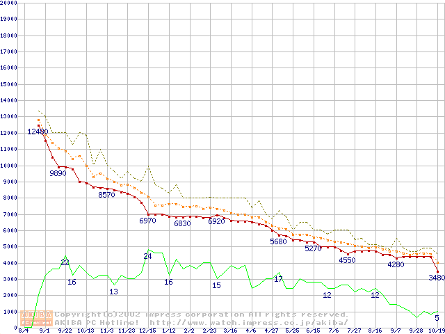 Socket A (PGA,FSB 200MHz,L2 64KB,Morgan)の最安値推移