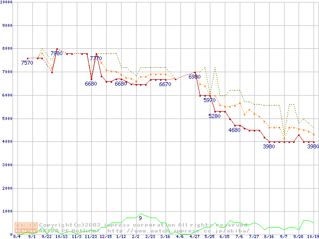 Socket 370 (PGA,FSB 133MHz,L2 64KB)の最安値推移