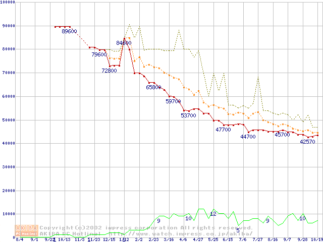 PC2100(DDR266) DDR SDRAM DIMM ECC対応 Registeredタイプの最安値推移