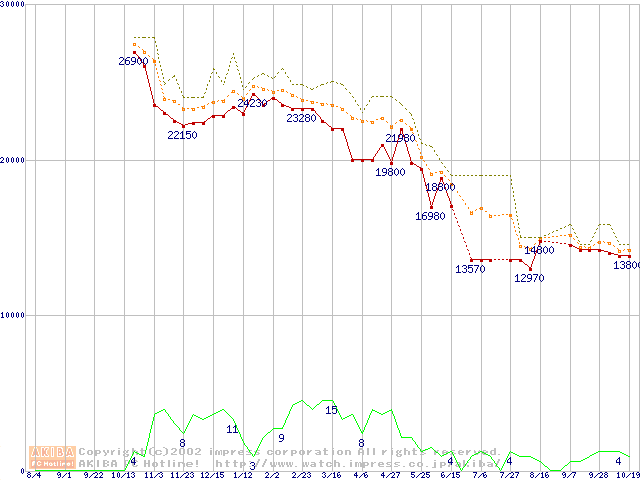 Socket A (OPGA,FSB 266MHz,L2 256KB,Palomino)の最安値推移