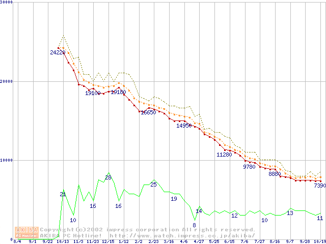 Socket A (OPGA,FSB 266MHz,L2 256KB,Palomino)の最安値推移