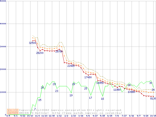 Athlon XP 1800+ (1.53GHz) リテールパッケージの価格推移