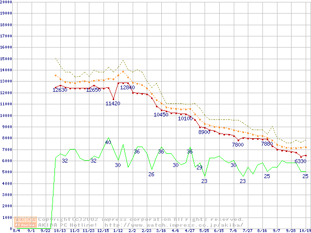 Celeron 1.20GHz FC-PGA2 リテールパッケージの価格推移