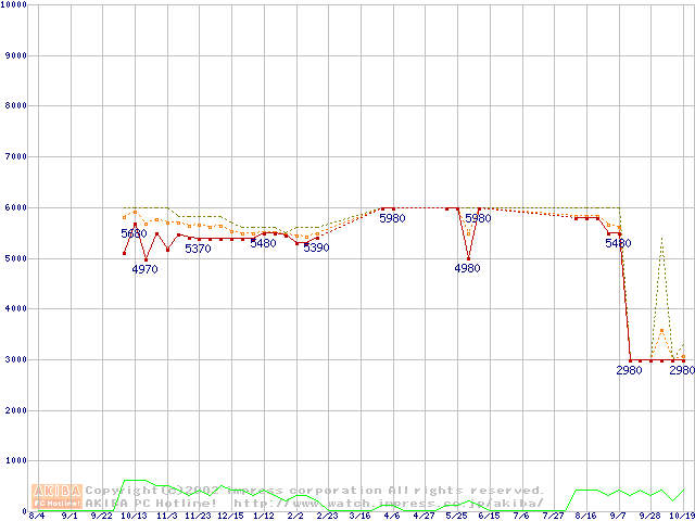 Socket A (Spitfire,PGA,FSB 200MHz,L2 64KB,1.4V)の最安値推移