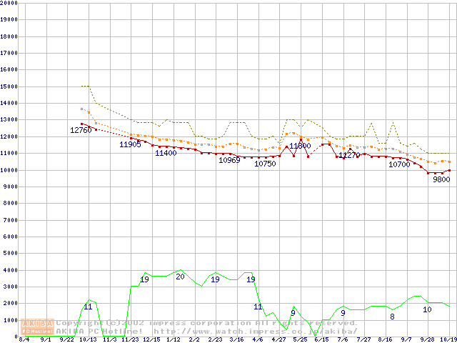 MKシリーズ (9.5mm,4200rpm)の最安値推移