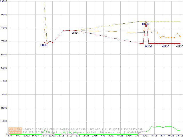 Socket A (OPGA,FSB 200MHz,L2 256KB)の最安値推移