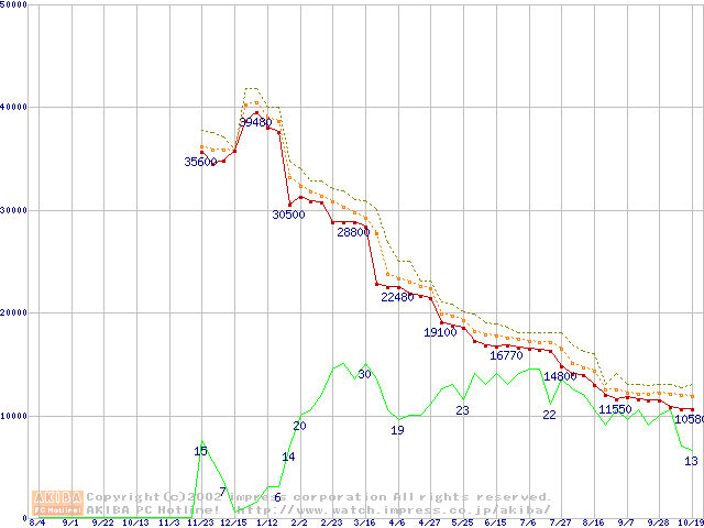 Athlon XP 1900+ (1.6GHz) リテールパッケージの価格推移