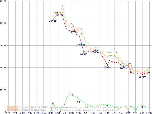 Socket A (OPGA,FSB 266MHz,L2 256KB,Palomino)の最安値推移