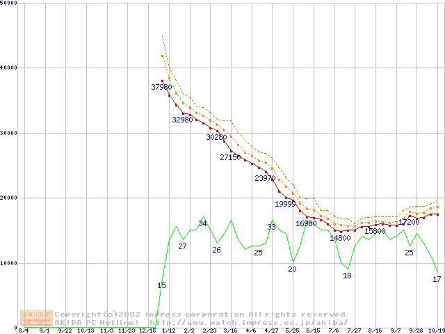 Deskstar 120GXP (7200rpm,2MB,UltraATA/100,BB)の最安値推移