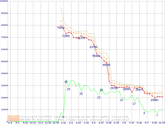 Pentium 4 2.20GHz リテールパッケージの価格推移