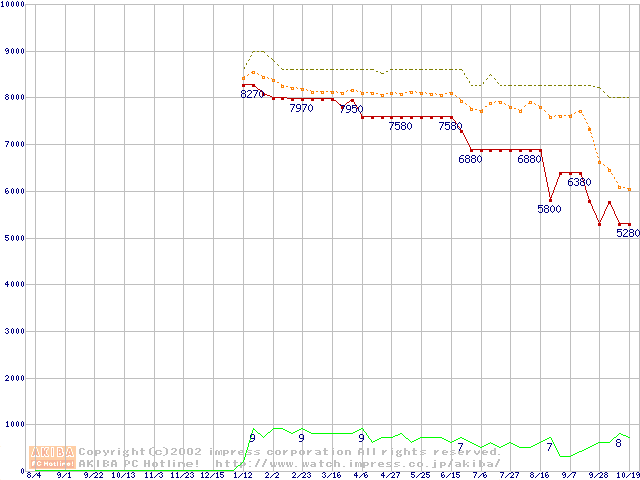 Socket 370 (PGA,FSB 100MHz,L2 64KB)の最安値推移