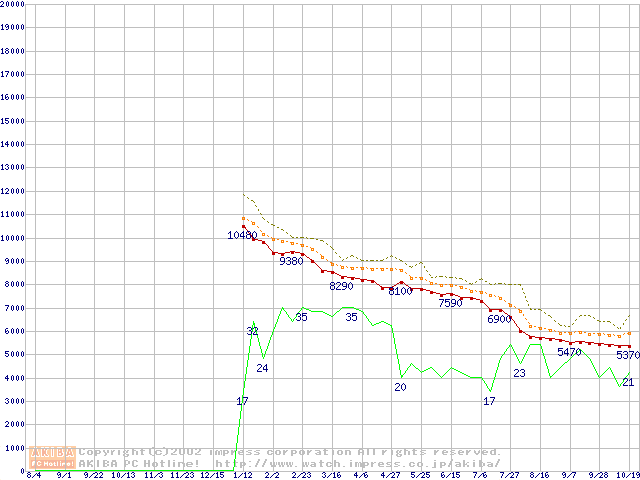 Celeron 1A GHz FC-PGA2 リテールパッケージの価格推移