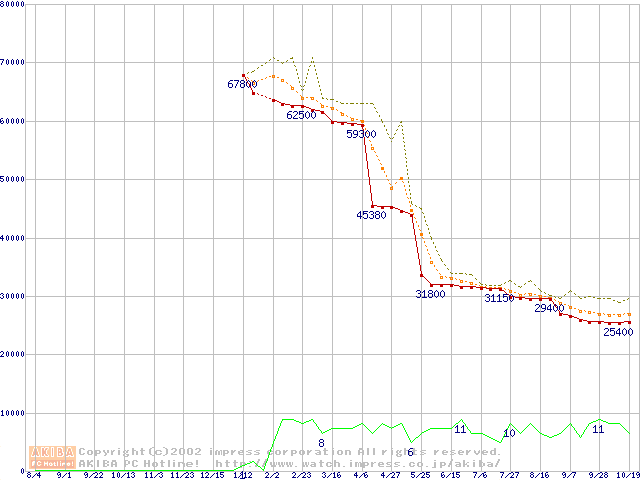 Socket 603 (micro-PGA,L2 512KB,Hyper-Threading,Prestonia)の最安値推移