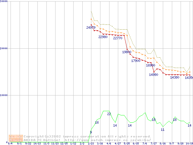Athlon MP 1600+ (1.4GHz) リテールパッケージの価格推移