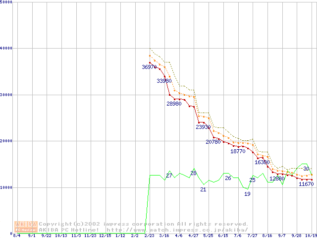 Athlon XP 2000+ (1.67GHz) リテールパッケージの価格推移