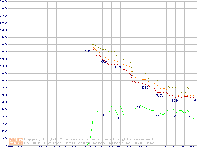 Duron 1.3GHz リテールパッケージの価格推移