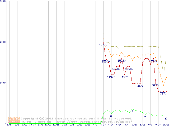 PC3000(DDR366) DDR SDRAM DIMMの最安値推移